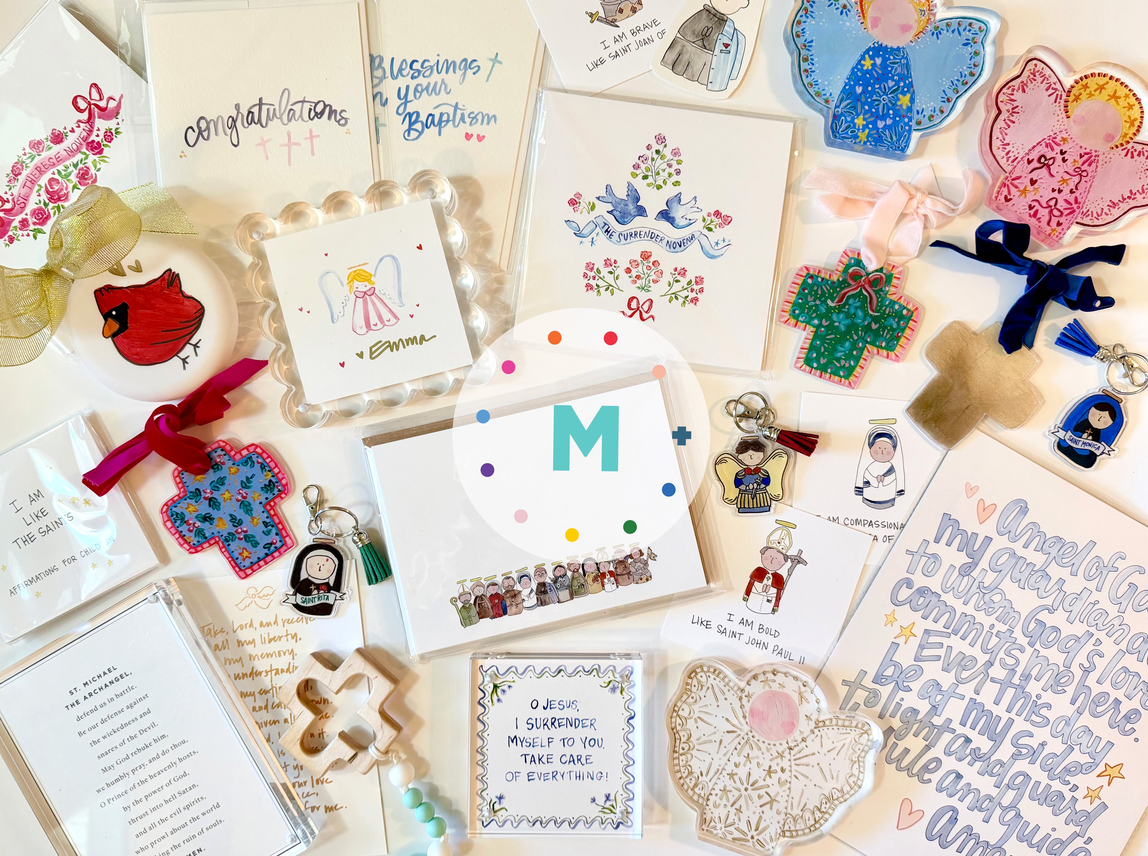 Affirmation sets, notecards, frame-ready prints, and other paper goods from our hand-painted Saints Collection.