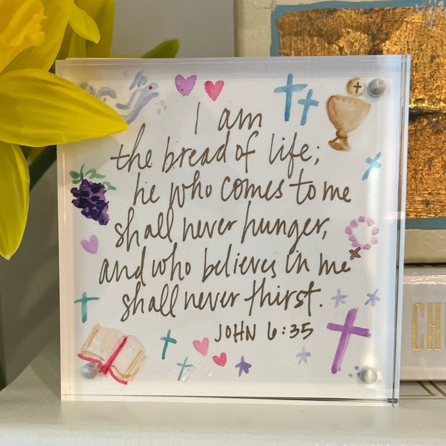 Hand painted acrylic blocks to commemorate and celebrate First Communion.