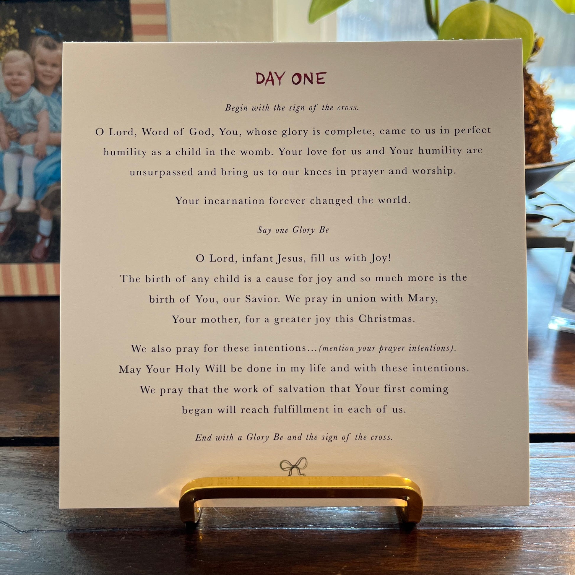 A novena is nine consecutive days of prayer, often said to ask God for a special intention. The Christmas Novena is said with the intention to prepare our hearts and minds for the birth of our Savior.